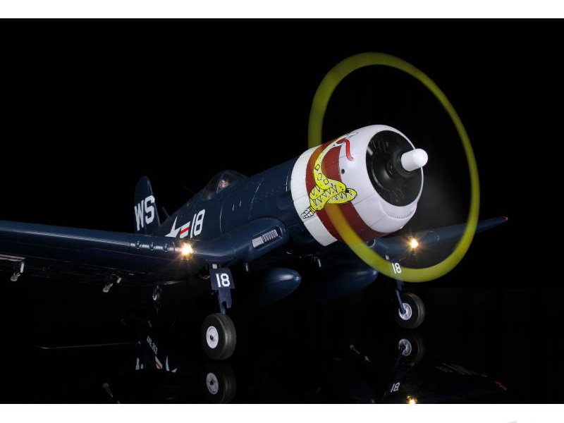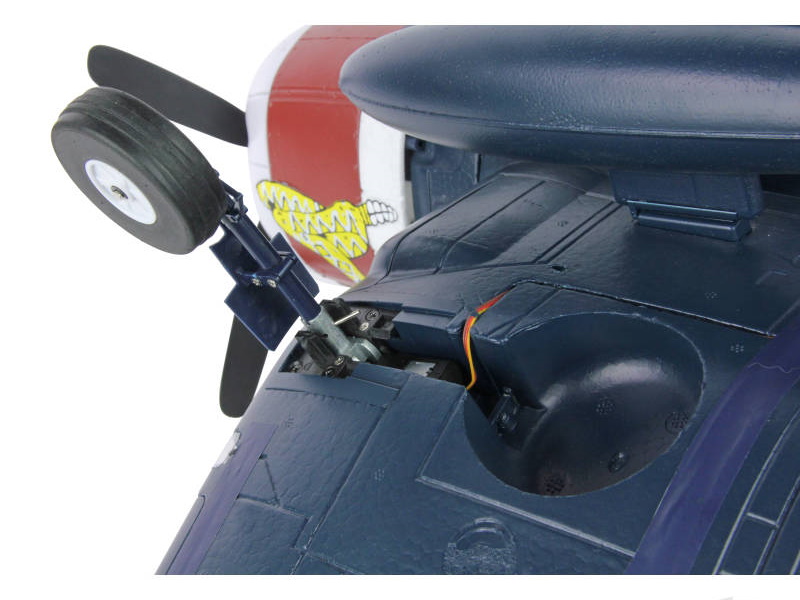 Presented in the colour scheme of the F4U flown by Vance ‘Bud’ Yount while aboard USS Badoeng Strait during the Korean War this one really is easy on the eye with an abundance of scale detail. Clock the crisply detailed dummy Pratt & Whitney radial, the four-blade Hamilton Standard propeller, slick airbrake-equipped twist ‘n’ turn retracts, scale pilot figure, working landing and navigation lights, flaps, drop tanks, arrestor hook, detailed tail wheel and panel lines, to mention but a few.