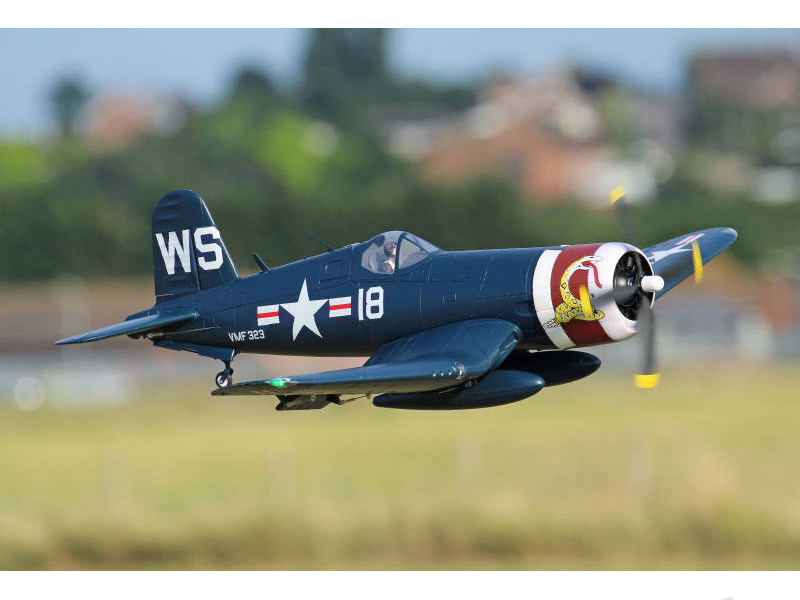 Designed for a standard 3S 2200mAh LiPo and basic 6-channel R/C the F4U’s 850KV brushless motor and 40A ESC combo offers a hugely satisfying vertical performance that’ll have you grinning from ear to ear as you scribe large warbird loops over the patch. Go on, treat yourself.