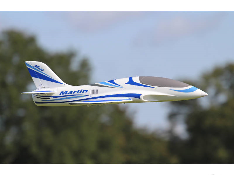If you’ve always fancied joining the jet set but have struggled to know where best to start, then ponder no more for here, in all its durable EPO-moulded loveliness, is the perfect entry-level jet, and what a cracker it is. We flew it extensively during the testing period and from the moment it confidently left our underarm launch we were smitten. Powerful, precise and arrow-like in flight you’ll find the Marlin inherently stable, beautifully forgiving and truly confidence-inspiring. With an aerobatic envelope to rival the very best that the EDF world can offer this is a jet that’ll look after you when you’re finding your feet and challenge you when you’ve found ‘em. From large sky-eating loops to locked-in knife-edge flight, s-l-o-w full flap passes and everything in-between, you’ll find your Marlin so versatile that it’ll quickly become a Sunday favourite. It looks good, it sounds good, it goes good! Assembling the Marlin is simplicity itself and with no glue required you can be airborne within an hour of opening the box. Just add a 4S 2200 to 2700mAh 35C flight pack (RDNBS2700S4C50X6), a 5-channel Tx and Rx combo and go wake the angels.