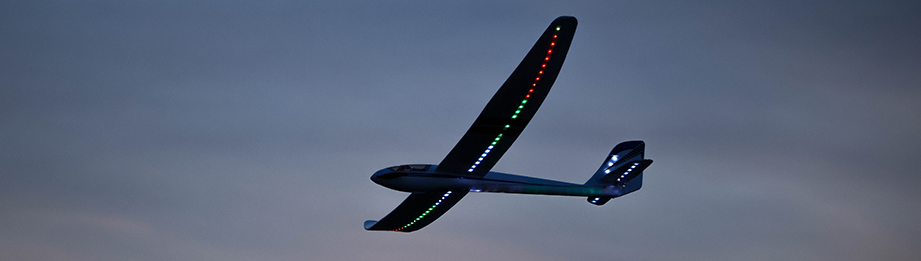 Like the legendary E-flite Radian motor gliders that came before, the Night Radian 2.0m combines the serenity of soaring with incredible sport and night flying capabilities. It also starts a new chapter in the legend by updating it with a modern trim scheme and upgrading it with a telemetry-capable ESC. Add a compatible Spektrum AirWare equipped transmitter and Smart receiver – such as the AR631 included with the Bind-N-Fly Basic version – to view motor RPM, current, overall battery voltage and other telemetry data while you fly. High-visibility LED lights are factory-installed throughout the airframe and powered by your 3S 1300-2200mAh flight battery. They can be programmed to display 100+ different color, sequence, and timing combinations using the built-in controller for incredible visibility and easy orientation when turned on for flying at dusk or at night. The durable, composite-reinforced EPO airframe has been kept as light as possible to deliver long flight times up to 15-30+ minutes with or without power due to the efficient brushless motor and folding prop. You can enjoy soaring and sport flying in the same flight, or climb to find thermals multiple times between battery changes – aided by the proven aerodynamics of the efficient airfoil and the gracefully curved polyhedral wing. The BNF Basic version features exclusive AS3X technology for smoother performance in windy and high lift conditions, plus optional-use SAFE Select technology for even easier launches, flying and landings. It all adds up to make the E-flite Night Radian 2.0m the perfect “next step” after a trainer, an ideal first glider, or an outstanding everyday sport model for a wide variety of pilots interested in flying day and night!