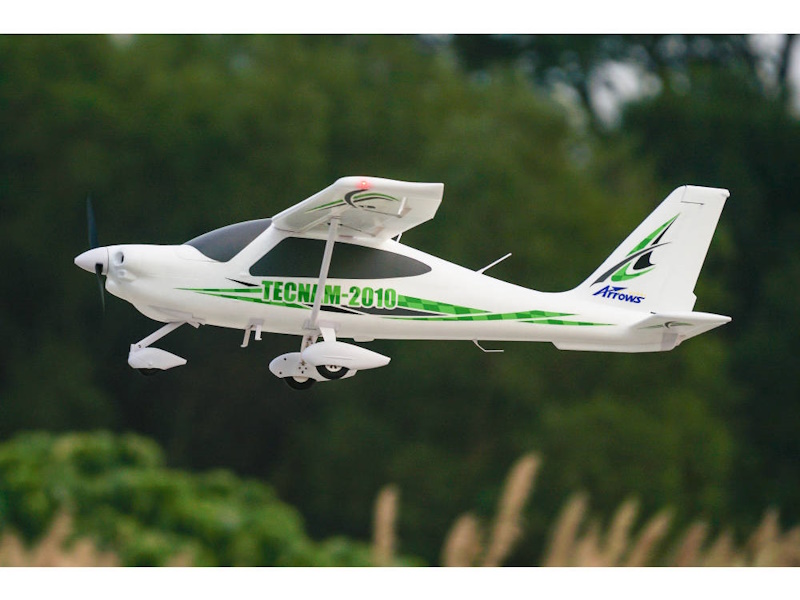 In days of old, learning to fly usually meant accepting a trainer that resembled a shipping container with wings. How times have changed. Based on the Tecnam P2010 four seater, Arrows latest is not only the perfect fixed-wing tutor – tough, stable and forgiving – it looks sensational and will take you from tentative early circuits to full-house aerobatics. Using a bog-standard 3S 2200mAh LiPo the flap-equipped Tecnam is also cheap to run and, at a gnat s whisker shy of 58 span, large enough to make an impression. Best of all it comes with the Vector switchable stabilisation system pre-installed. Truly, the prospect of learning to fly has never looked so good and, for that matter, neither has stooging around on a calm day taking in some aeros . Lovely.
