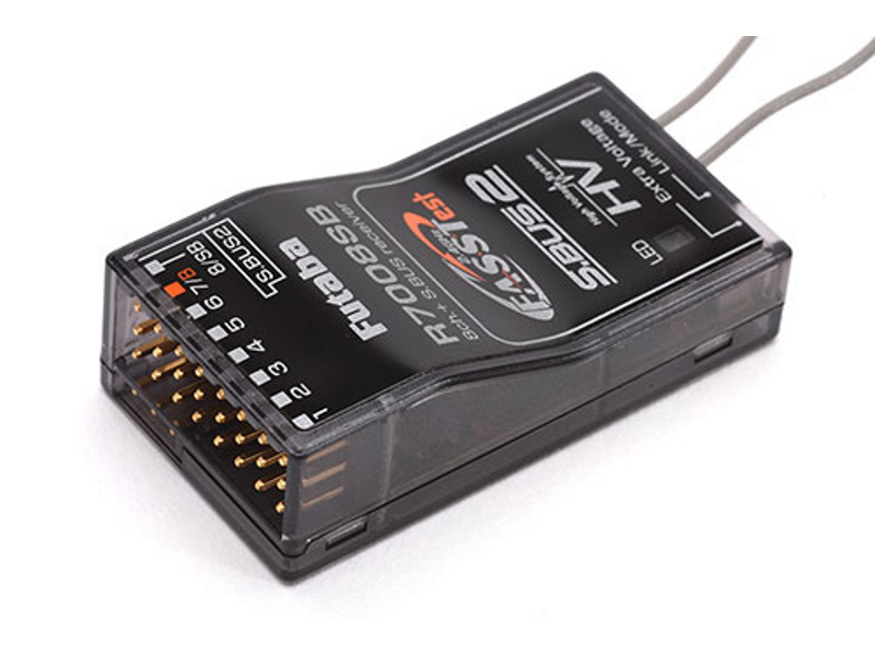 8-channel PWM, 18-channel S.BUS/S.BUS2 T-FHSS receiver, up to 8.4V, with telemetry and dual antenna diversity.