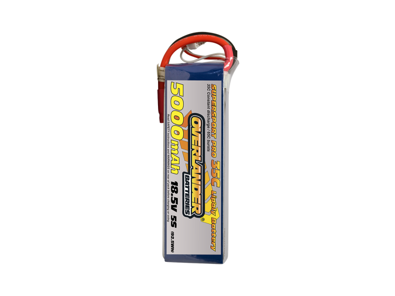The 5000mAh 18.5V 5S 35C LiPo battery is part of Overlander’s Supersport Pro range. This is our most comprehensive collection ever and is no doubt our most popular range of lithium batteries. It is perfectly designed to cater for almost every application and user alike. With a constant discharge rating of 35C, hitting a peak of 65C in bursts, it is no wonder that these batteries are loved so much! The huge selection of capacities and voltages makes it almost impossible not to find the perfect battery for you within this range. Offering low weight and compact sizing, our Supersport Pro LiPo battery range is a must in your lithium collection.