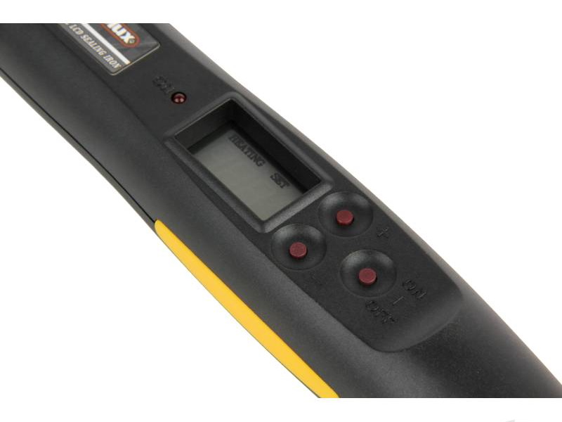 A professional purpose-made heat-shrink film and fabric sealing iron with LCD, precise temperature control and an LED status indicator