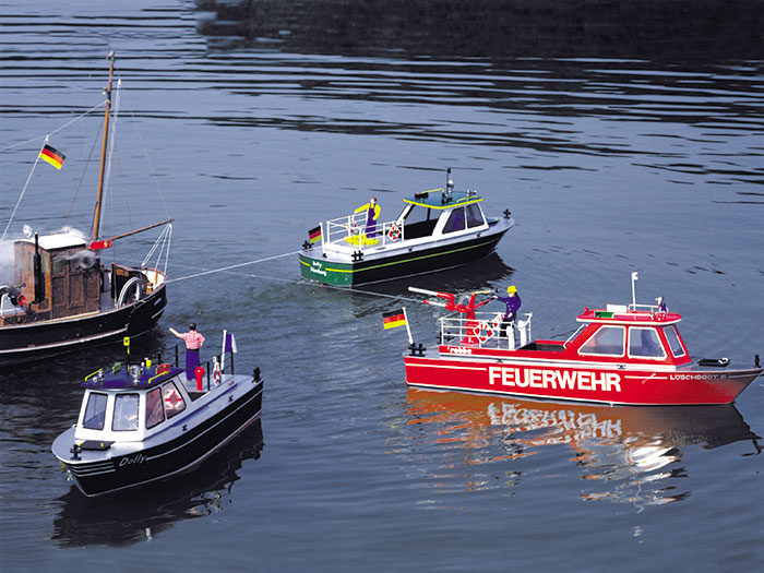 The electric power system for our model of the Dolly has been carefully selected to suit the vessel, and the single-screw system provides an excellent scale performance. The hull features an integral screw tunnel, giving very good manoeuvrability. The recommended 6 V/1.3 Ah battery gives running times of up to 3/4 of an hour.