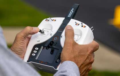The NX7e transmitters gimbals offer long-lasting precision that’s conveniently adjustable from the front of the transmitter. Weight distribution and switch placement have been optimized for comfort and precise, fatigue-free control. Its antenna folds conveniently for compact storage and transport.