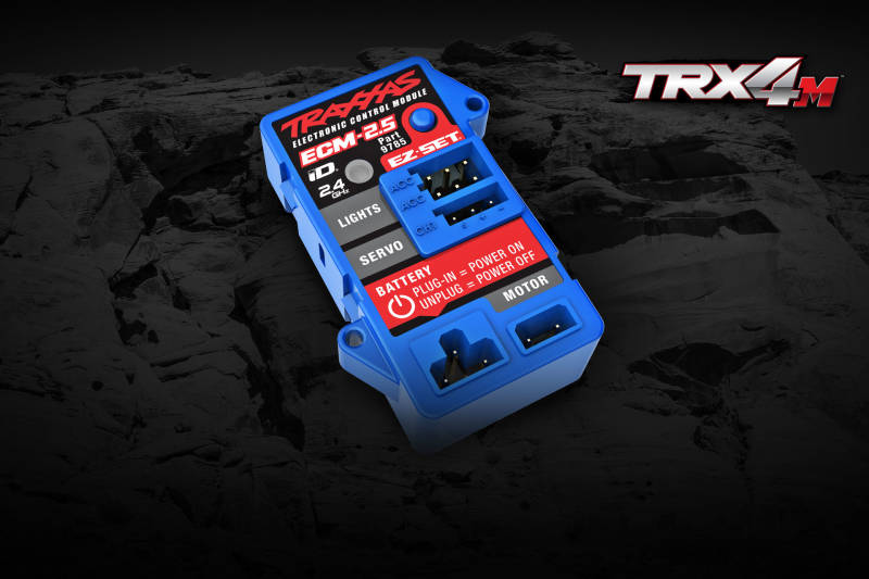 The all-in-one ECM-2.5 incorporates all the features of an XL-5 speed control, TQ receiver, and Pro Scale Lighting Control Module into one sleek waterproof package. The ECM-2.5 features three realistic driving modes with smooth, precise control and outstanding throttle response.