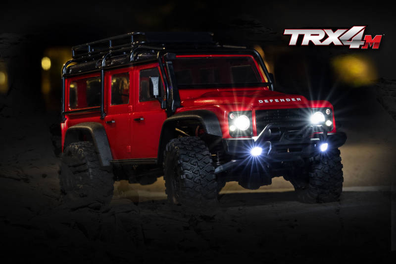 TRX-4m Scale and Trail Crawler with Land Rover Defender Body (Red): 1/18 Scale 4WD Electric Truck with TQ 2.4GHz Radio System, ECM-2.5 Electronic Control Module (fwd/rev), and Titan 87T motor. Includes: 750 mAh 2-Cell LiPo Battery and USB-powered charger