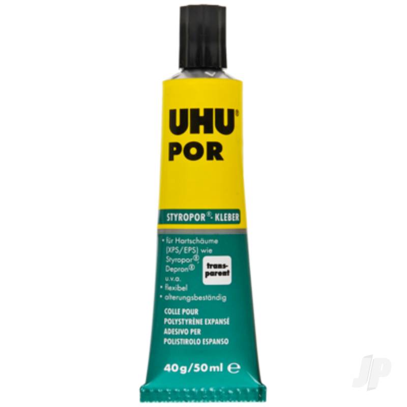 UHU POR is a quick-setting special adhesive for bonding expanded polysterene, e.g. Styropor® also in combination with other materials. It forms an elastic adhesive film which is highly resistant to age and which is colorless and waterproof.