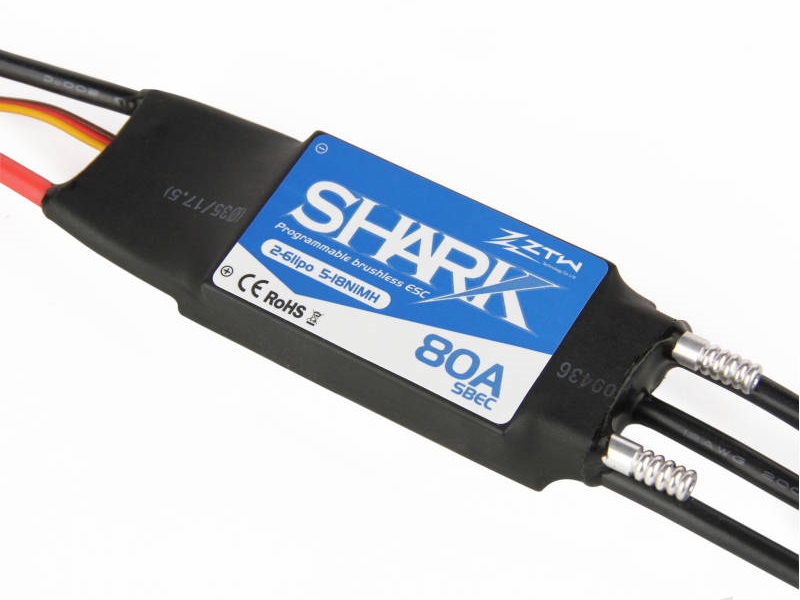 Designed specifically to provide a solid hassle-free performance, Shark programmable brushless marine ESCs offer high quality components programmed with ZTW’s mature software at a price that’ll have you reaching for your bank card. Water cooled, waterproof and packing a built-in switch-mode BEC – with a maximum current handling capability ranging from 2A (Shark 20 and 30) through 3A (Shark 40) to 5A (Shark 50, 60, 70 & 80) – each speed controller features Over Temperature Protection and includes a high-throttle safety function that prevents the ESC from arming the motor if the throttle stick is not fully closed. Fact is, for those who seek an affordable fit ‘n’ forget solution, there really isn’t a better alternative.